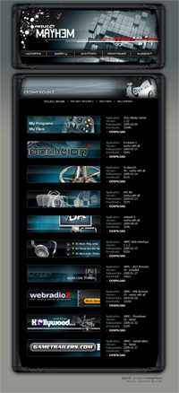 information: Sidan är designad av Mathias Mahling, och all kodning är gjord av mig. Sidan är hemsida för designprojeket Project Mayhem vilket består av en hel del olika skin till Xbox applikationer, däribland Xbox Media Center.